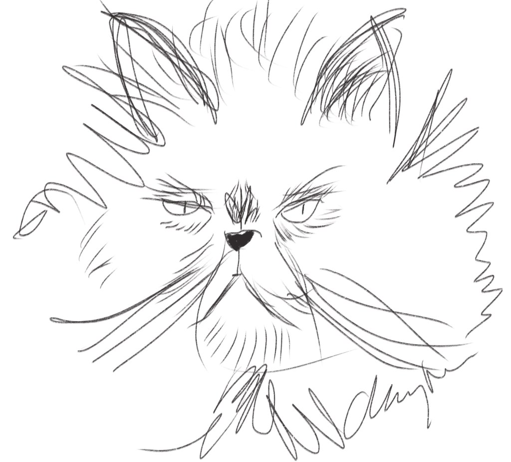 There’s an enormous cat just ahead of me. It sinks down on its paws in alarm. The cat is ludicrously furry, like a sheep or a huge duster, or maybe one of those rollers you see in a car wash.
