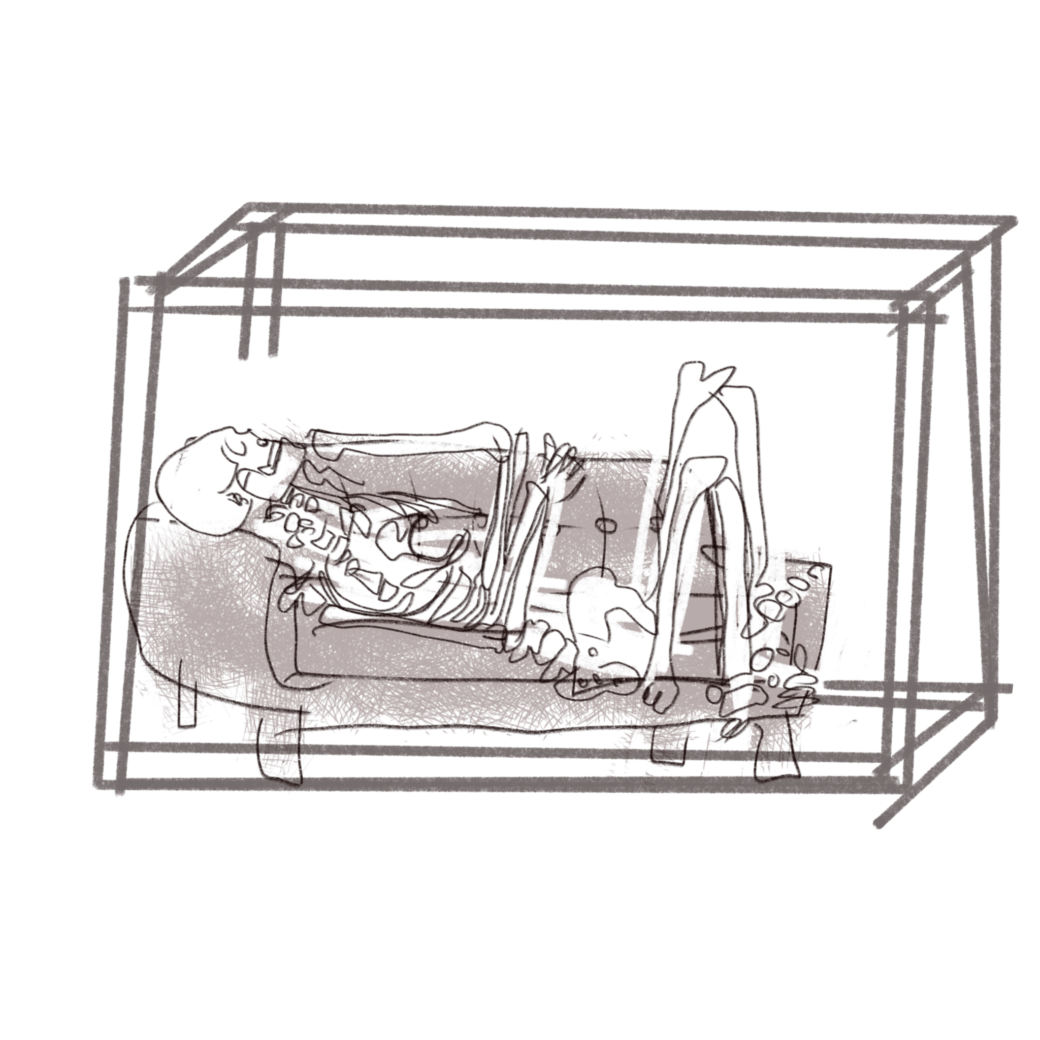 TIME and another box set passes / and you’re still approximately where your cushioned arse is / planted on the sofa with a mug of tea & TV glasses / soupy beard and droopy moustaches / and the earth drifts on through the milky way / in its timeless, aimless universal ballet / and night becomes aeon / and aeon millennium / and you’re only on season 5 of Mad Men / and the oceans rise up / and the sediment piles up / till you end up flat compacted / and it’s a million years till you’re finally extracted / by some neat geologist called Niles McGrammer / who whacks out your fossil with a pointy hammer / dusts off the dust and stammers / I can’t believe how well it’s come out! / my proudest moment without a doubt / the level of detail is quite phenomenal / the remote control on the swollen abdominal… / and you wind up an exhibit in the city museum / laid out with the others for the people to see ‘em / who read all about your vacant look / in the pages of their glossy book / the strange evolution of streaming eye / and why they called you: sofalanthropus claytonii