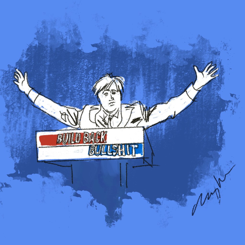 We’re Boris the Builder building back better! / beaver, batter, bother, whatever / a wink to the rich, a nod to the camera / the Eton dodge of sounding clever / while the King is in the All Together, and all together / we read the room and ride the weather / and everything goes to the highest bidder