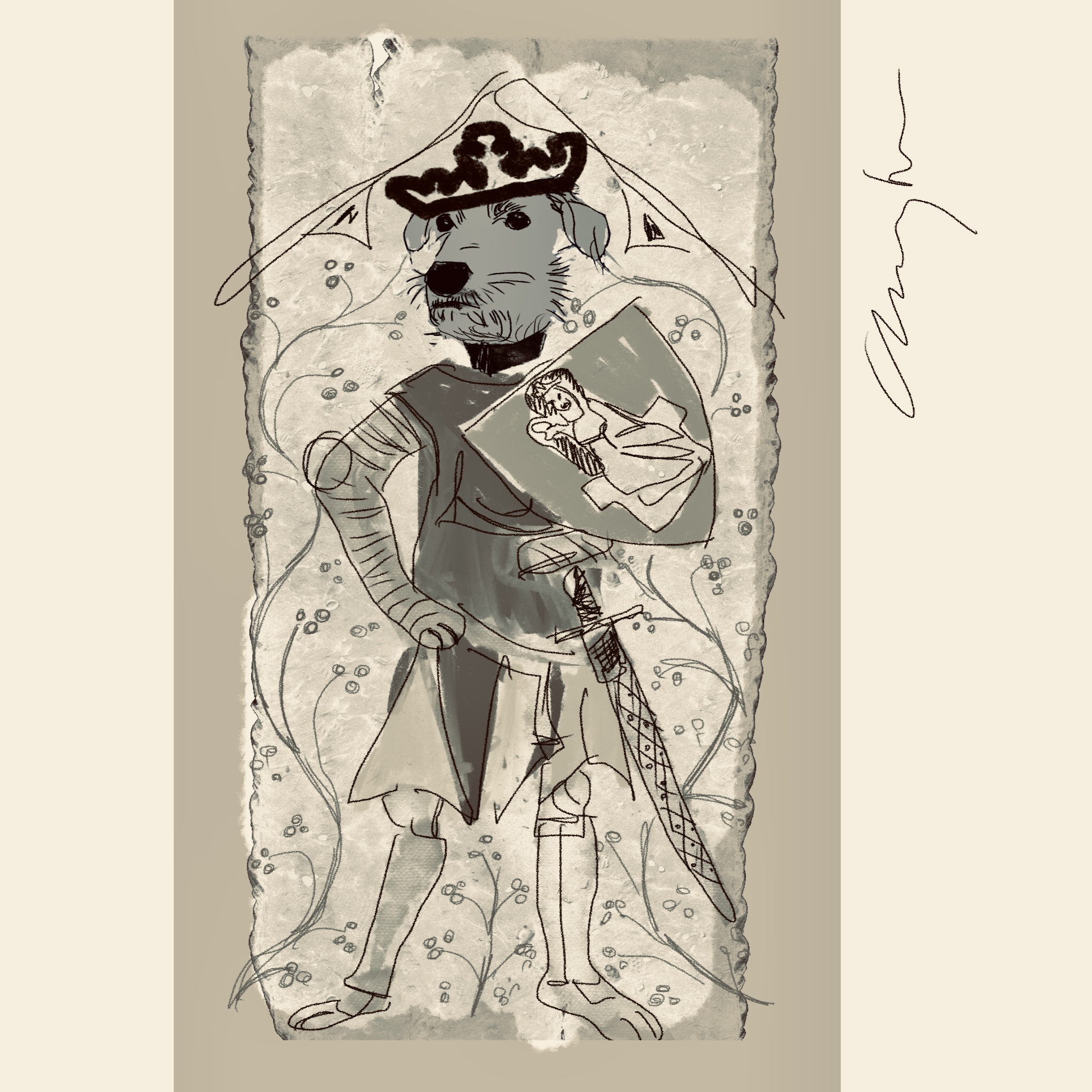 Whereby the Welsh Terrier Merlin adviseth Our Lurcher