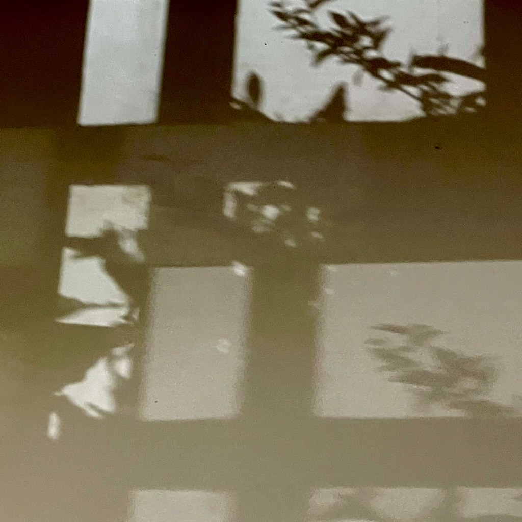 as shadows play across the blinds