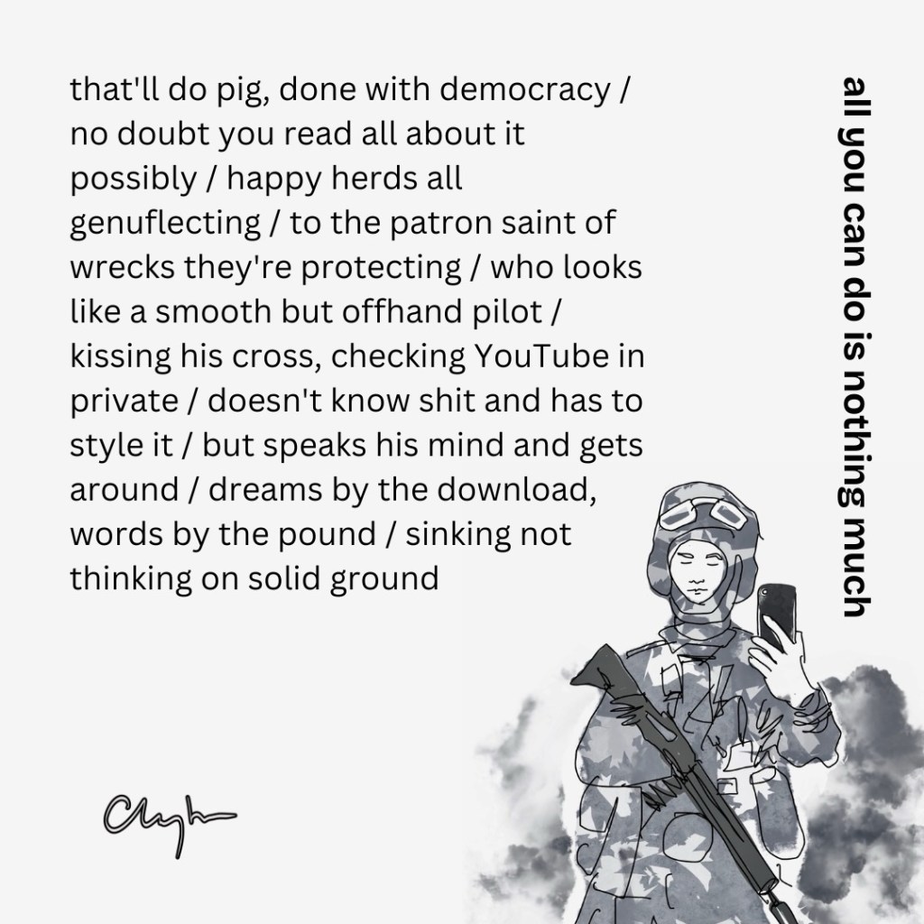 all you can do is nothing much February 16, 2025 ~ jim clayton Share this: Click to share on Bluesky (Opens in new window) Bluesky Like Loading...