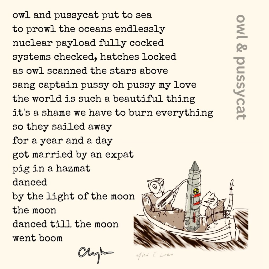 owl & pussycat March 17, 2025 ~ jim clayton Share this: Click to share on Bluesky (Opens in new window) Bluesky Like Loading...