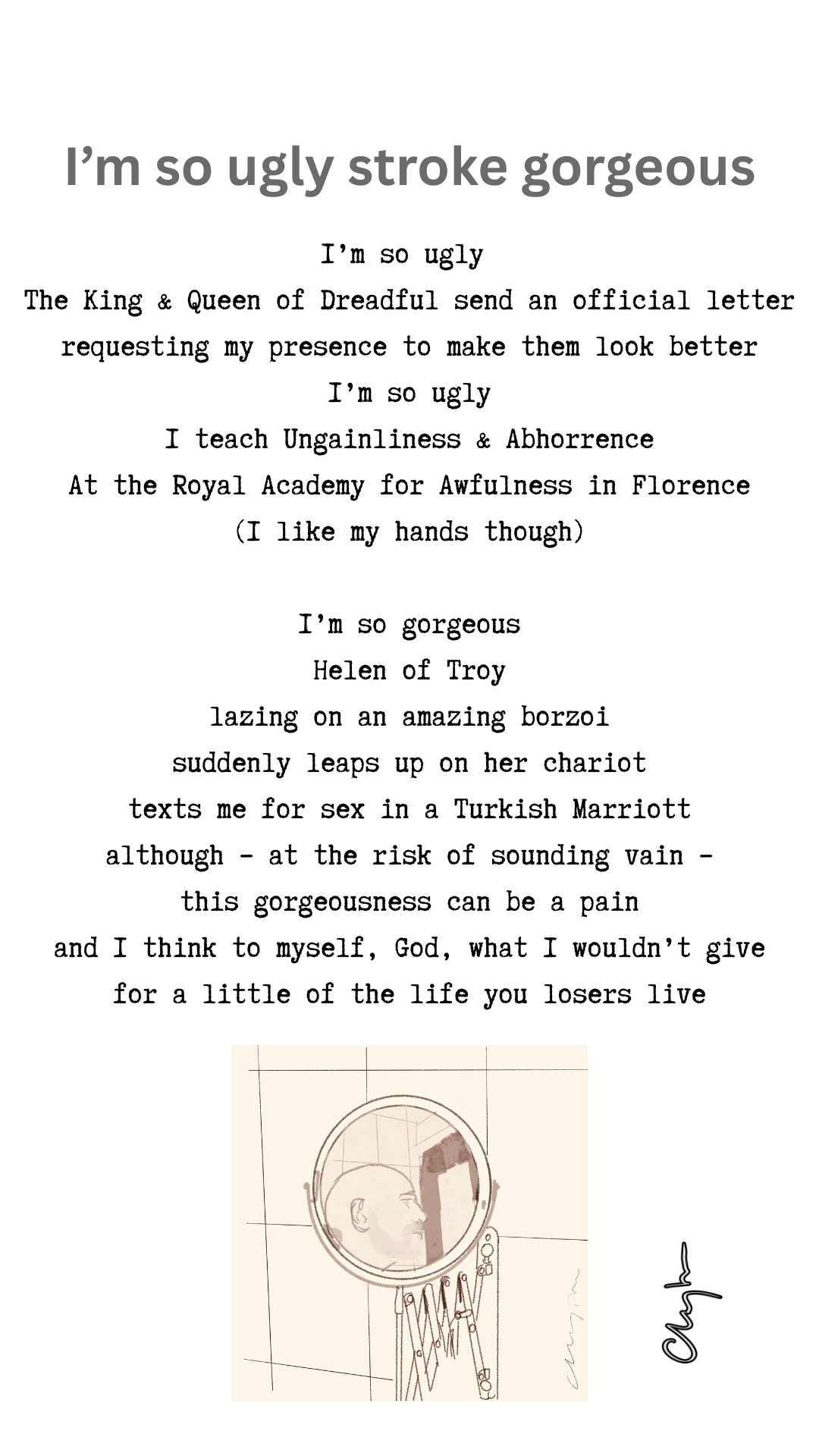 I’m so ugly stroke gorgeous March 30, 2025 ~ jim clayton Share this: Click to share on Bluesky (Opens in new window) Bluesky Like Loading...