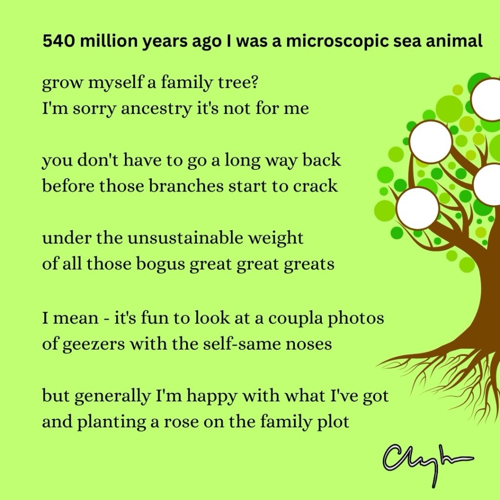 540 million years ago I was a microscopic sea animal April 28, 2025 ~ jim clayton Share this: Click to share on Bluesky (Opens in new window) Bluesky Like Loading...