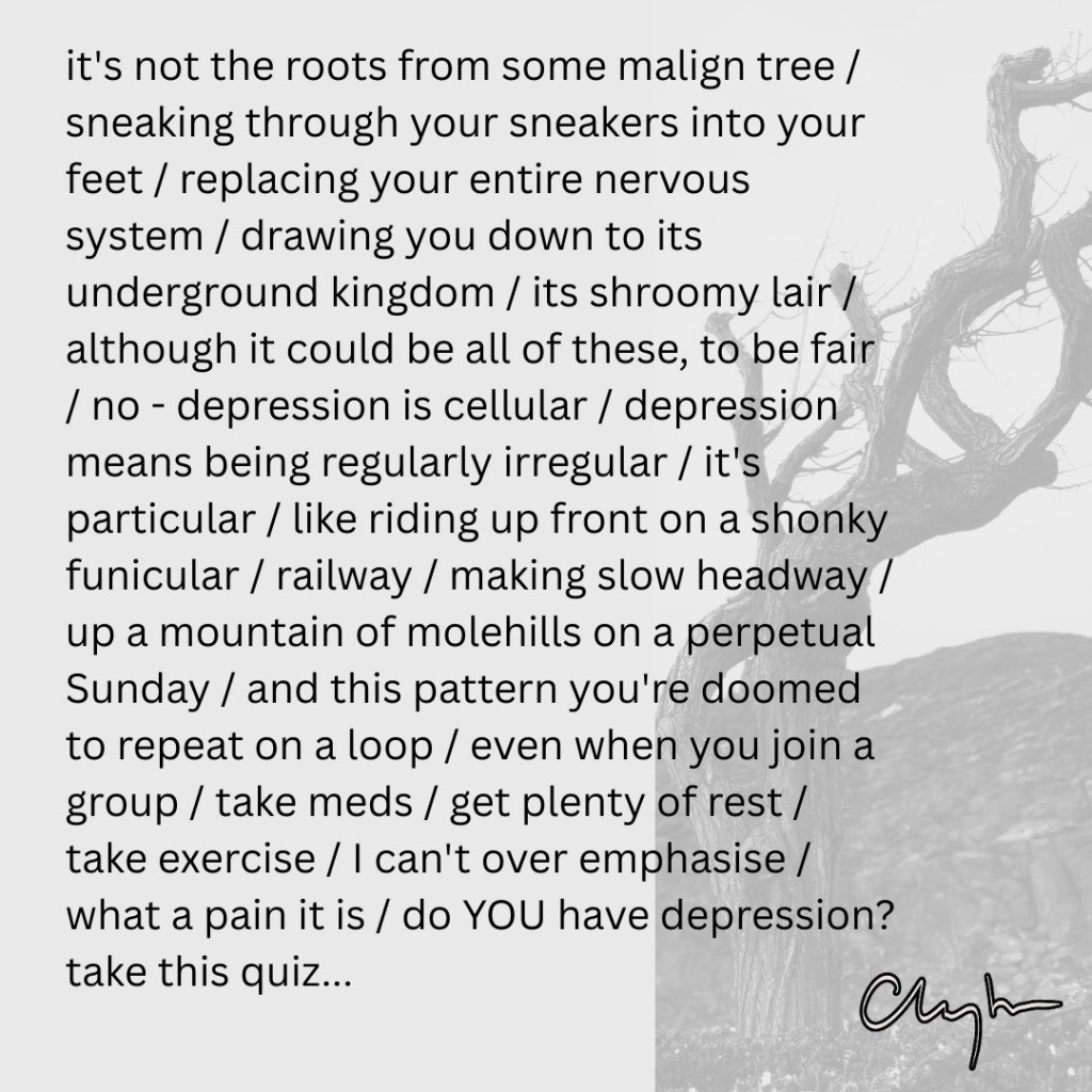 a session on depression August 13, 2025 ~ jim clayton Share this: Click to share on Bluesky (Opens in new window) Bluesky Like Loading...