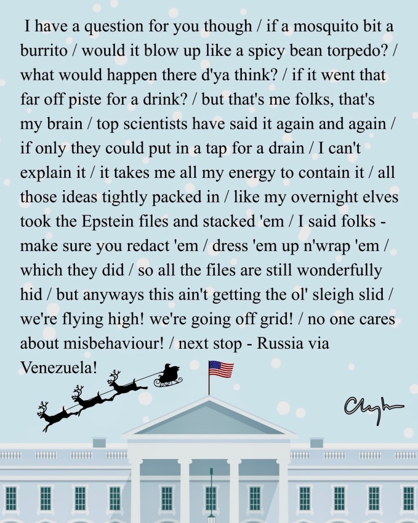 yo ho potus December 21, 2025 ~ jim clayton Share this: Click to share on Bluesky (Opens in new window) Bluesky Like Loading...