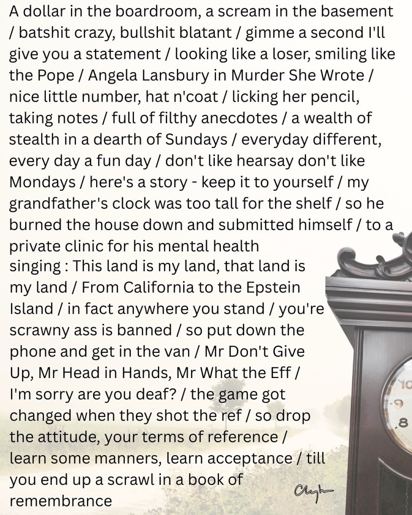 what time d’ya call this? January 28, 2026 ~ jim clayton Share this: Share on Bluesky (Opens in new window) Bluesky Like Loading...