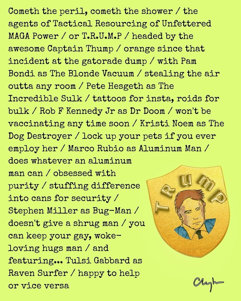 Agents of T.R.U.M.P March 4, 2026 ~ jim clayton Share this: Share on Bluesky (Opens in new window) Bluesky Like Loading...