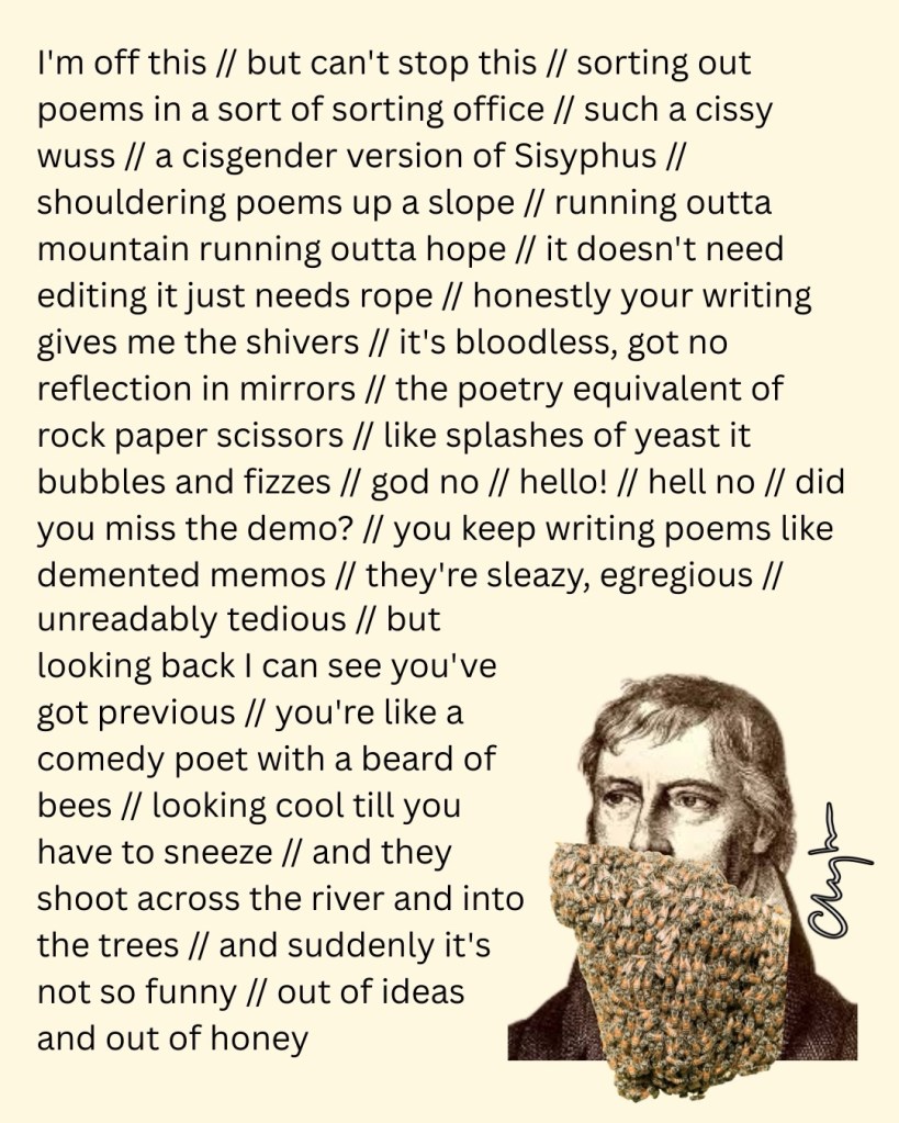 the poet rubs his chin, thinks about shaving March 25, 2026 ~ jim clayton Share this: Share on Bluesky (Opens in new window) Bluesky Like Loading...