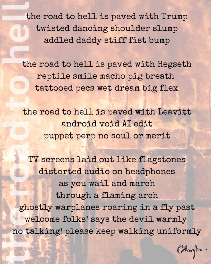the road to hell April 9, 2026 ~ jim clayton Share this: Share on Bluesky (Opens in new window) Bluesky Like Loading...