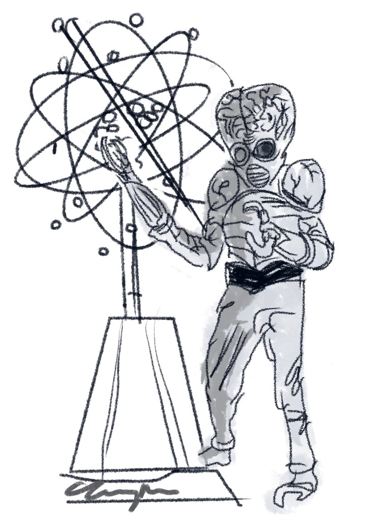 Jesus Christ. Karl draws a circle. The Earth? The moon? No – it’s the Earth. He draws another circle further away. Then tells us HOW much further away that is. Look – I don’t need to know, professor. I’m guessing you can’t just walk there. Please. I’m begging you. Get your spacesuit on. If you’re in too much of a hurry the zipper might jam.