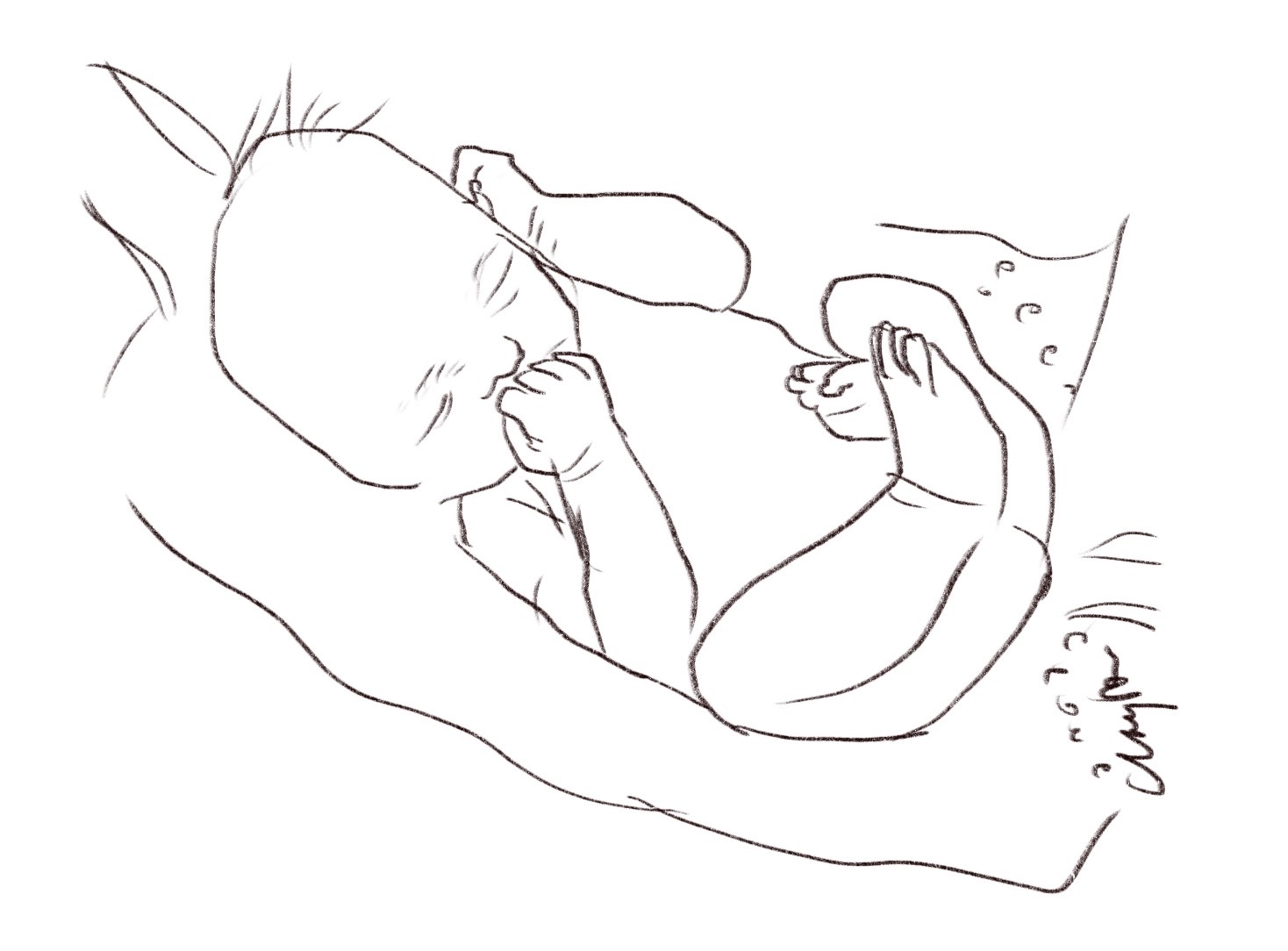 We all laugh – and the sudden noise wakes the baby. It shudders in her arms, throwing out its hands, kicking up its legs. The Moro Reflex, I think they call it. A vestigial spark, a million years in the making. Something about falling.