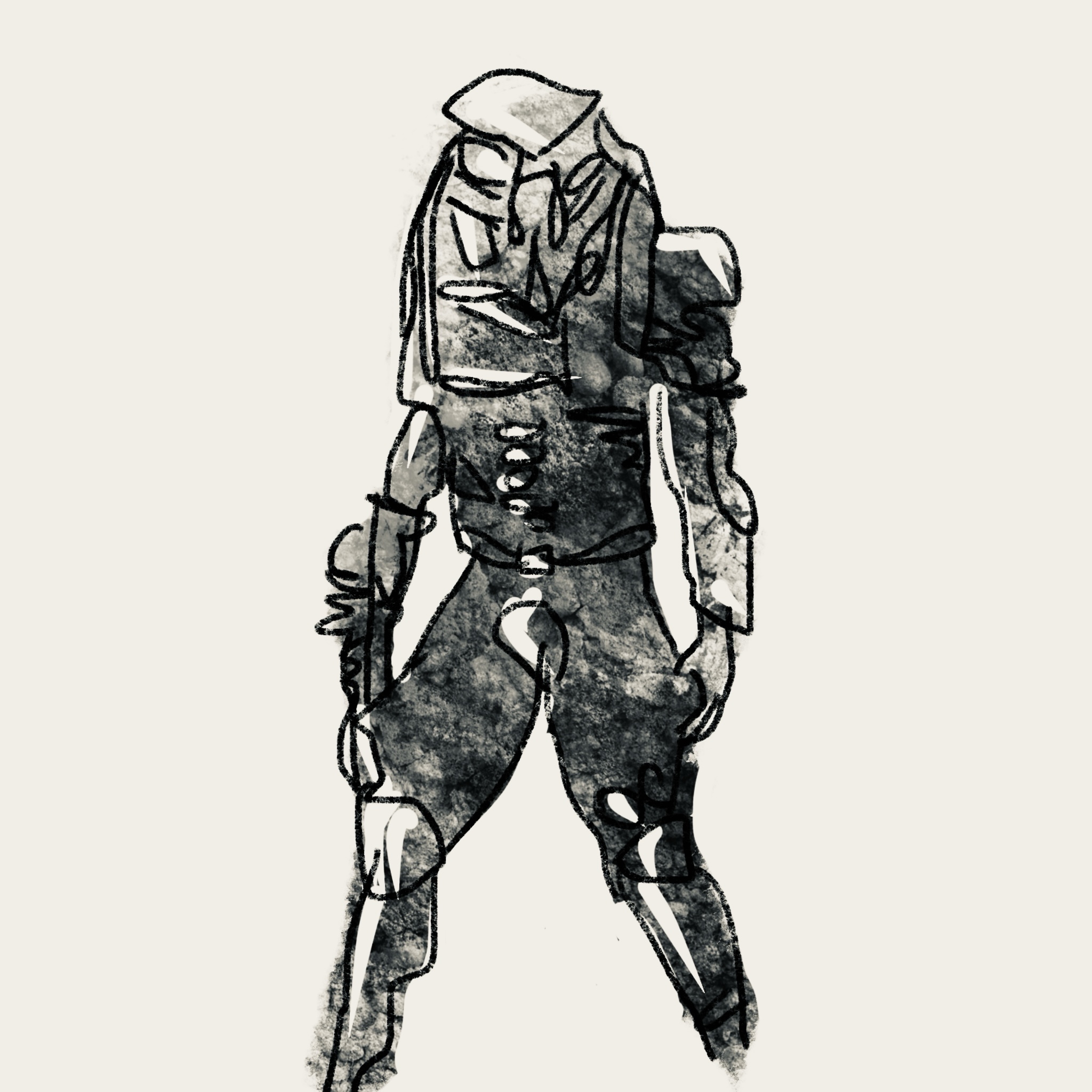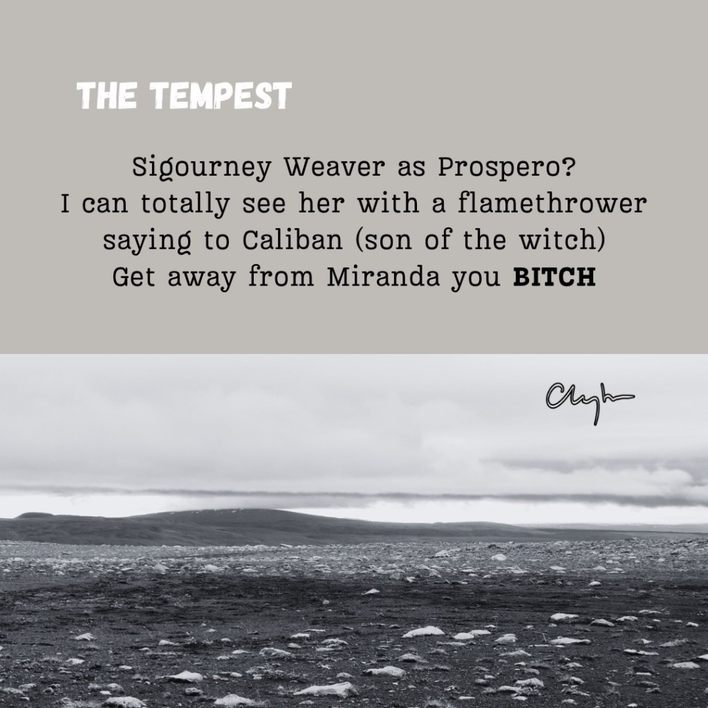 (Scene: an arid plain in what used to be Egypt. THE ALIEN wanders on, wearing a protective suit and respirator that looks like a pharaoh’s headdress. Checks the atmosphere with a wrist gadget, then tentatively takes the headdress off. Crouches, takes a handful of sand, and watches it play through the fingers of their glove as sad music starts to play)