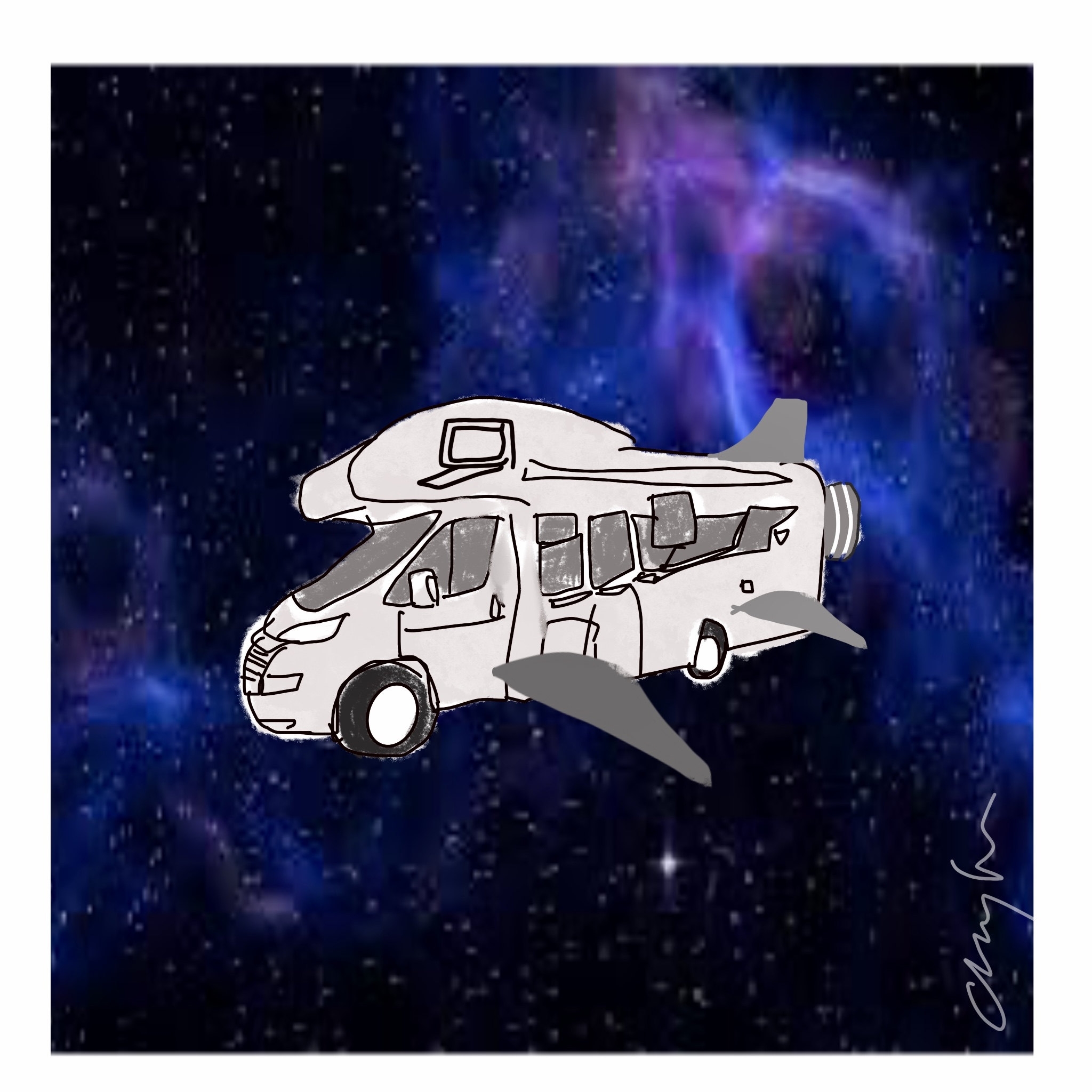 with a lightyear intro, unrehearsed / out across the universe / fly drive stylin’ / Rigel beguiling / ripped like Vikings / tentacle styling / popping and locking, charisma spiking / hubcap sighting / very very frightening / comin’ right atcha / with our signal beats n’ heat ray captcha / so scary you’ll fracture / matter of fact ya / better brace for entertainment, brace fer rapture / imminent impact / our saucer’s real stack’d / crystal tipped n’ laser packed / Starship Enterprise shit like that