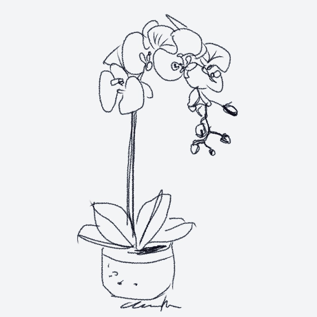 I follow her up the stairs, past a pot of green and white moth orchids, reaching down towards us from their alcove.
