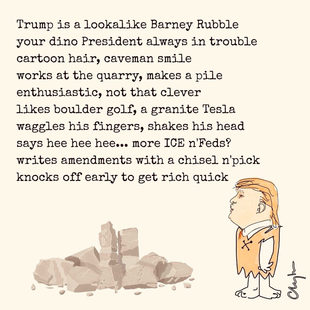 Meet the Trumpstones October 15, 2025 ~ jim clayton ~ Leave a comment Share this: Click to share on Bluesky (Opens in new window) Bluesky Like Loading...