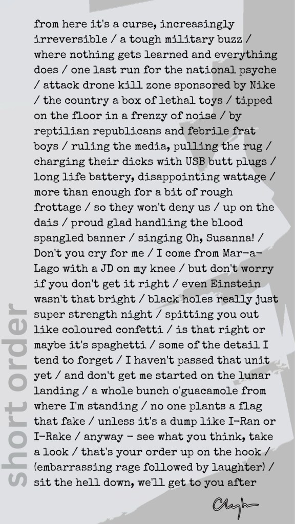 short order July 6, 2025 ~ jim clayton ~ Leave a comment Share this: Click to share on Bluesky (Opens in new window) Bluesky Like Loading...