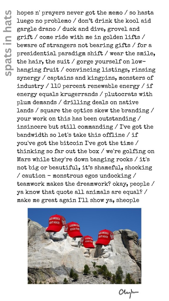 spats in hats June 6, 2025 ~ jim clayton ~ Leave a comment Share this: Share on Bluesky (Opens in new window) Bluesky Like Loading...