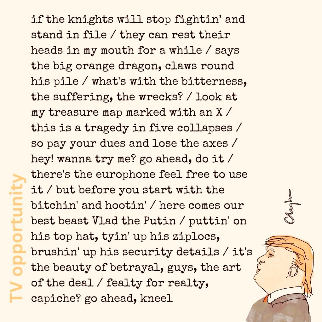 donald thru the looking-glass March 13, 2025 ~ jim clayton ~ Leave a comment Share this: Share on Bluesky (Opens in new window) Bluesky Like Loading...