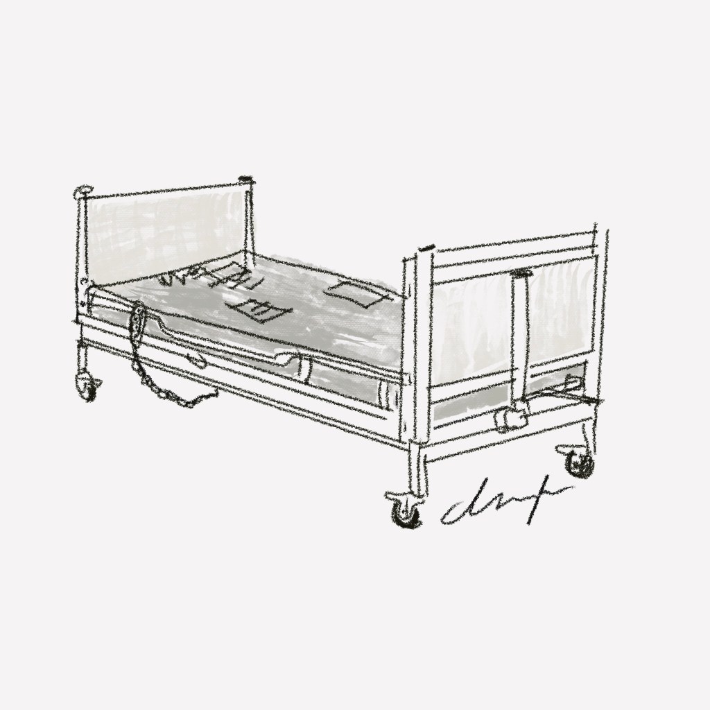 ‘Where did they put the bed? I ask the carer.