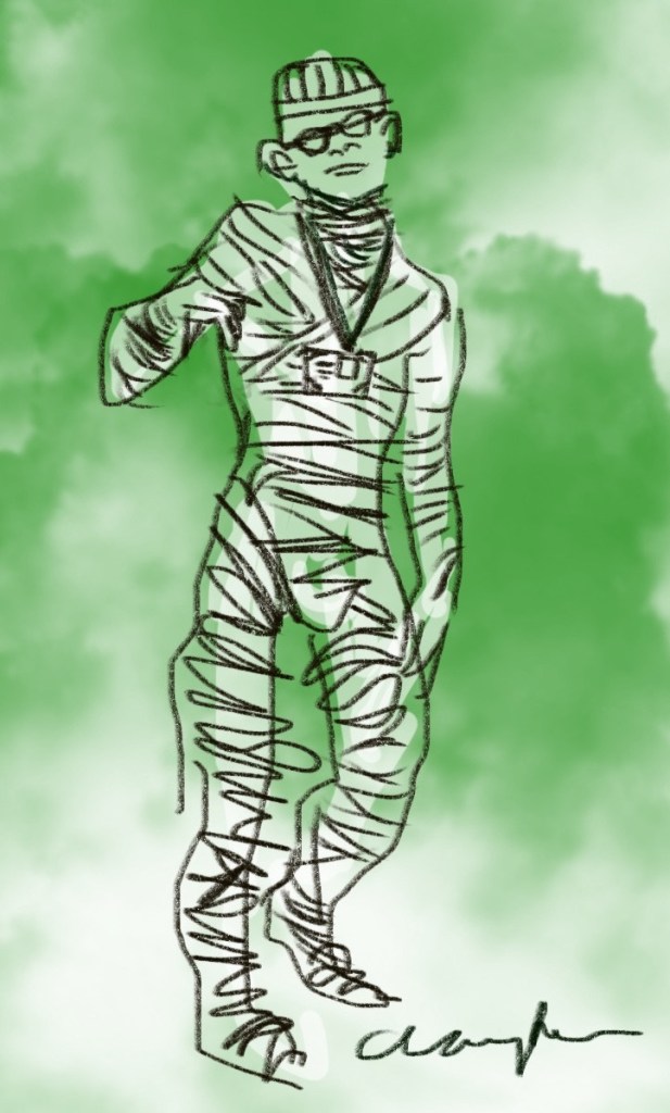 And here comes Cummings the Mummy! / Hands-outstretched & talking funny / in a dodgy dealer kinda mumble / like he’s evil incarnate but somehow humble / We LOVE his comedy trips and tumbles / his bad boy beanie, his lanyard fumbles / adorably horrible / unaccountably trouble / COMPLETELY at home amongst the rubble
