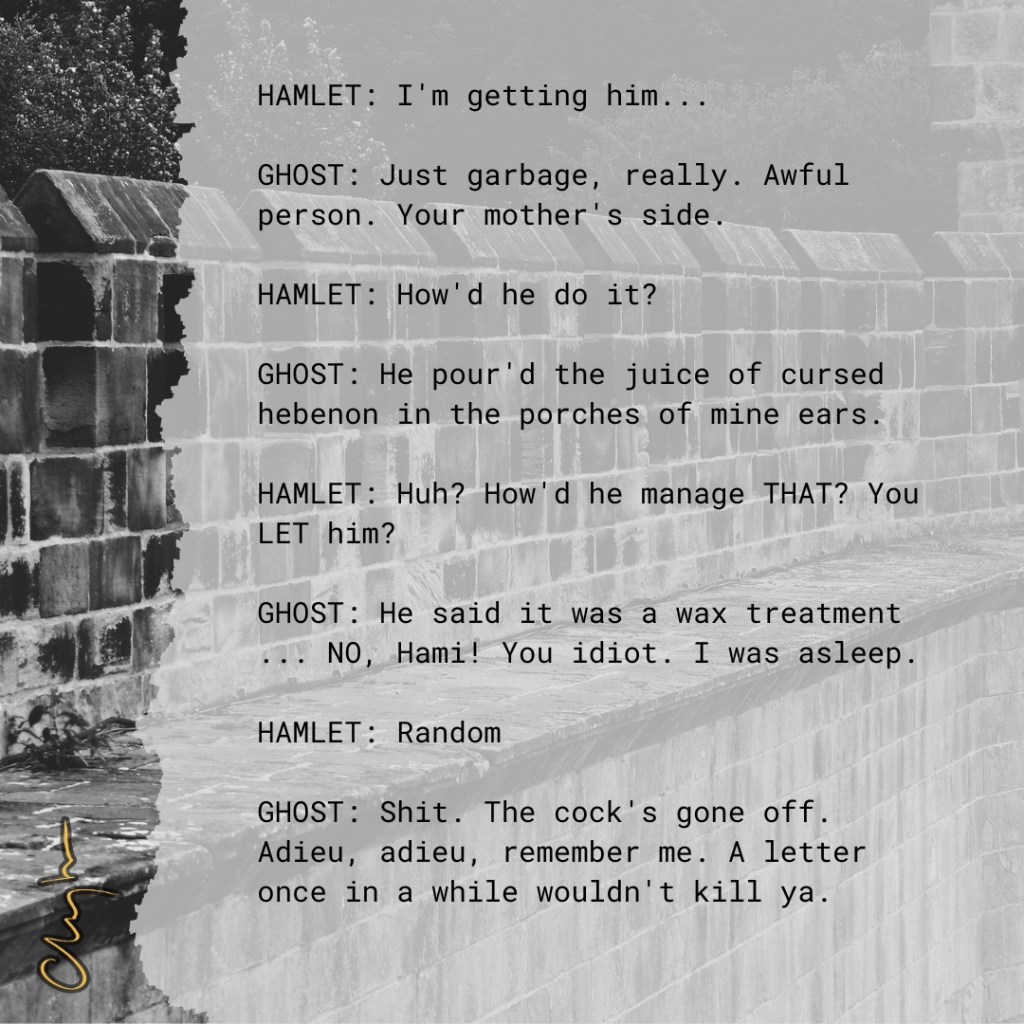 but no – it’s just like Hamlet’s father, right?