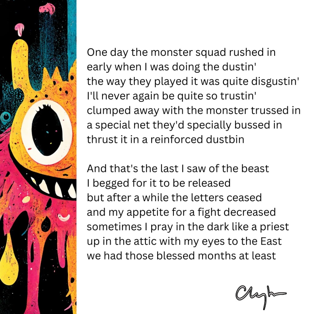 monster trouble September 2, 2025 ~ jim clayton ~ Leave a comment Share this: Click to share on Bluesky (Opens in new window) Bluesky Like Loading...