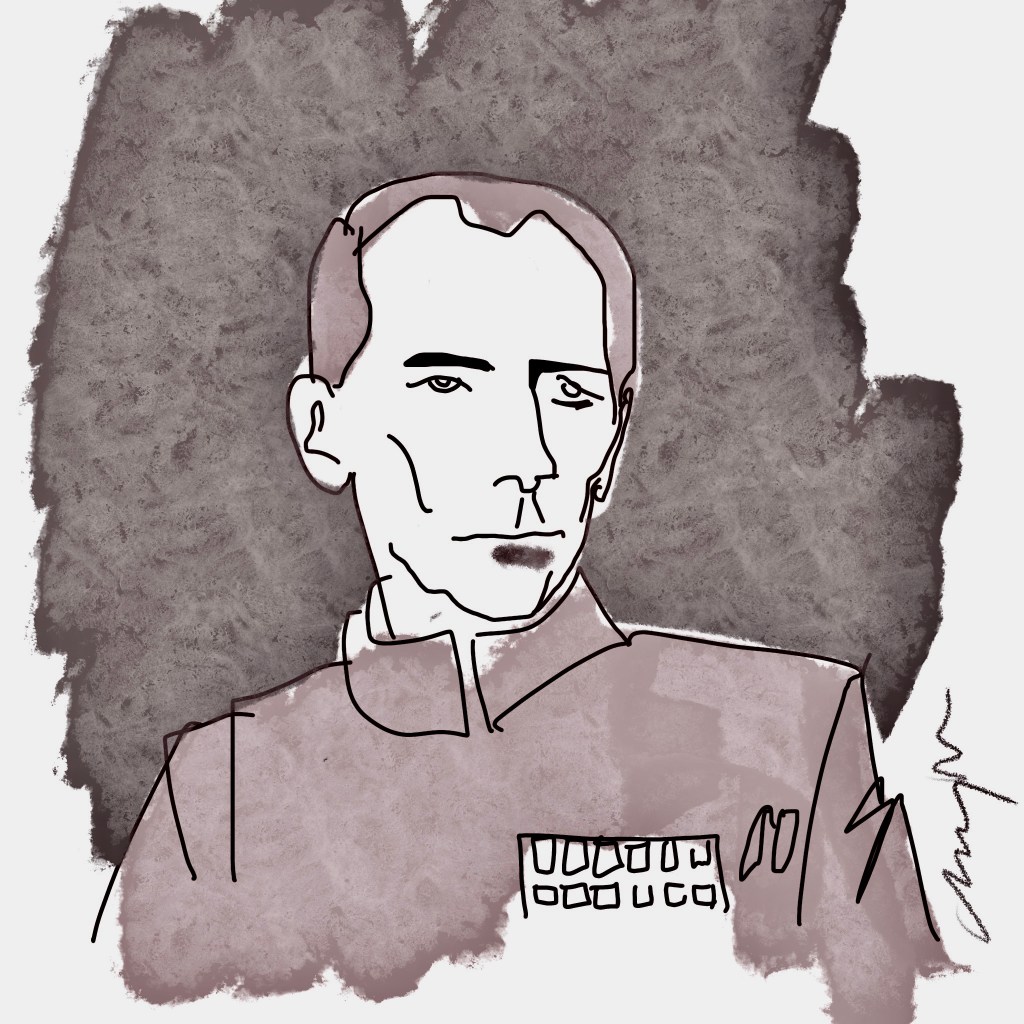 1:21:19 Pomeroy comes onto the set in the morning. ‘How did your rehearsal go, eh?’ he says. VD is sitting in his makeup chair with his back to him. ‘What’s the matter? The cat got your tongue?’ says Pomeroy – then takes a breath. Because he can see Scat backing off with a prop very much like a tongue. So the halberd WASN’T effective. (Stop saying HALBERD).