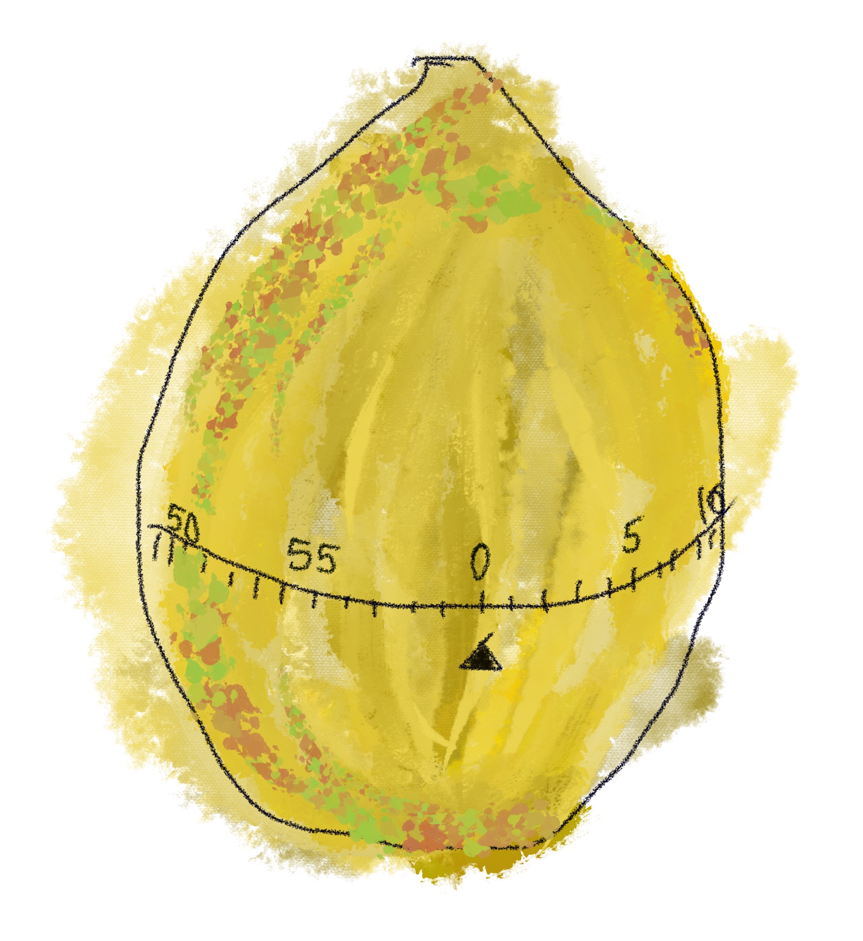 The one he wants is shaped like a lemon. I twist it to twenty five minutes, then set it on the table next to him. It’s an eerie scene, Mr Sullivan crooked forwards in an exaggerated pose of despair, the timer whirring away next to him.